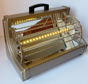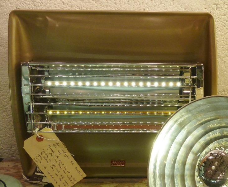 It takes around a day to disassemble the fire to its individual components, with each bolt being polished and every surface being carefully restored. As we developed the design behind the custom made LED replacement elements, we remain the only company the UK, and as far as we can tell the world, to produce these lamps. All of our fires are vintage heaters which we individually source; we never use modern reproductions. For this reason each fire is unique and we have yet to make two identical units. The fires are powered by the supplied 12 volts plug-in transformer, which eliminates the danger posed by the original 230v mains operated units.