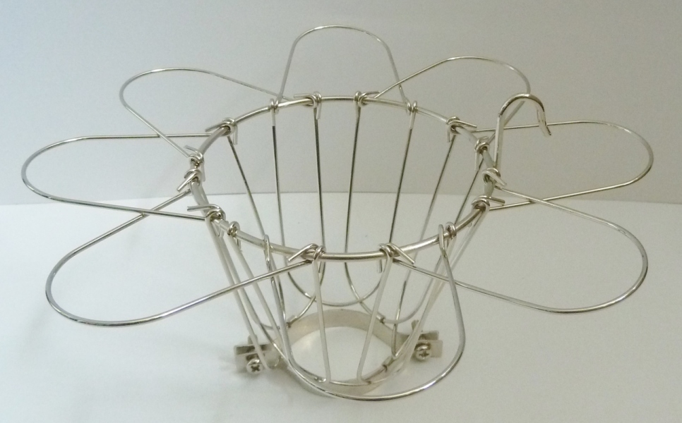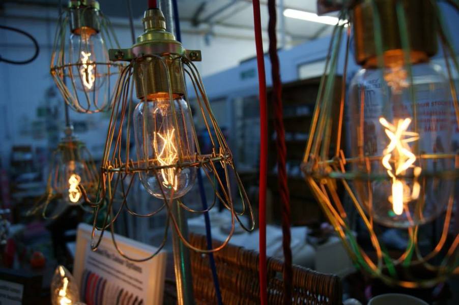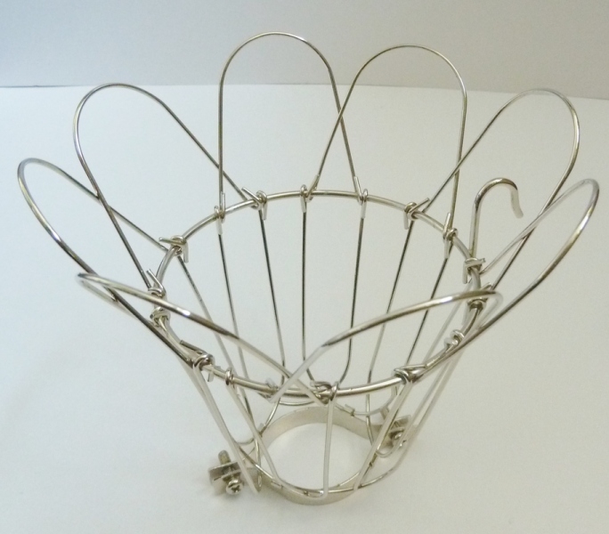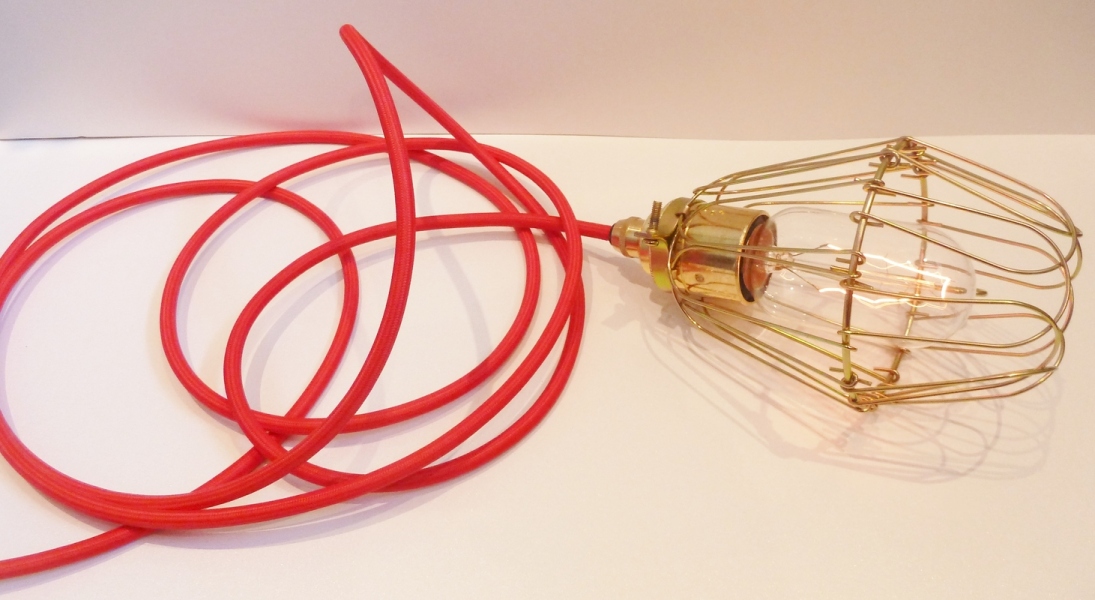 - Lamp includes a 60w vintage style bulb (as used in all of our photos), polished nickel/chrome wire cage shade, ES nickel finish lampholder, 3m of braided flex (colour of your choice) and a 13A plug (with 3A fuse).